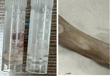 與實(shí)驗(yàn)前對(duì)比,組織塊成均勻漿狀,骨頭呈細(xì)膩粉末狀。在生物提取實(shí)驗(yàn)中,我們需要對(duì)樣品進(jìn)行研磨,研磨的方式一般可分為干磨和濕磨,但無(wú)論哪一種方法,呈現(xiàn)的效果需要足夠均勻和細(xì)膩才能保證后續(xù)提取實(shí)驗(yàn)的成功率。本實(shí)驗(yàn)中的樣品均已達(dá)到實(shí)驗(yàn)要求,可用于后續(xù)提取實(shí)驗(yàn)。