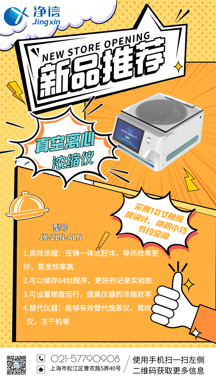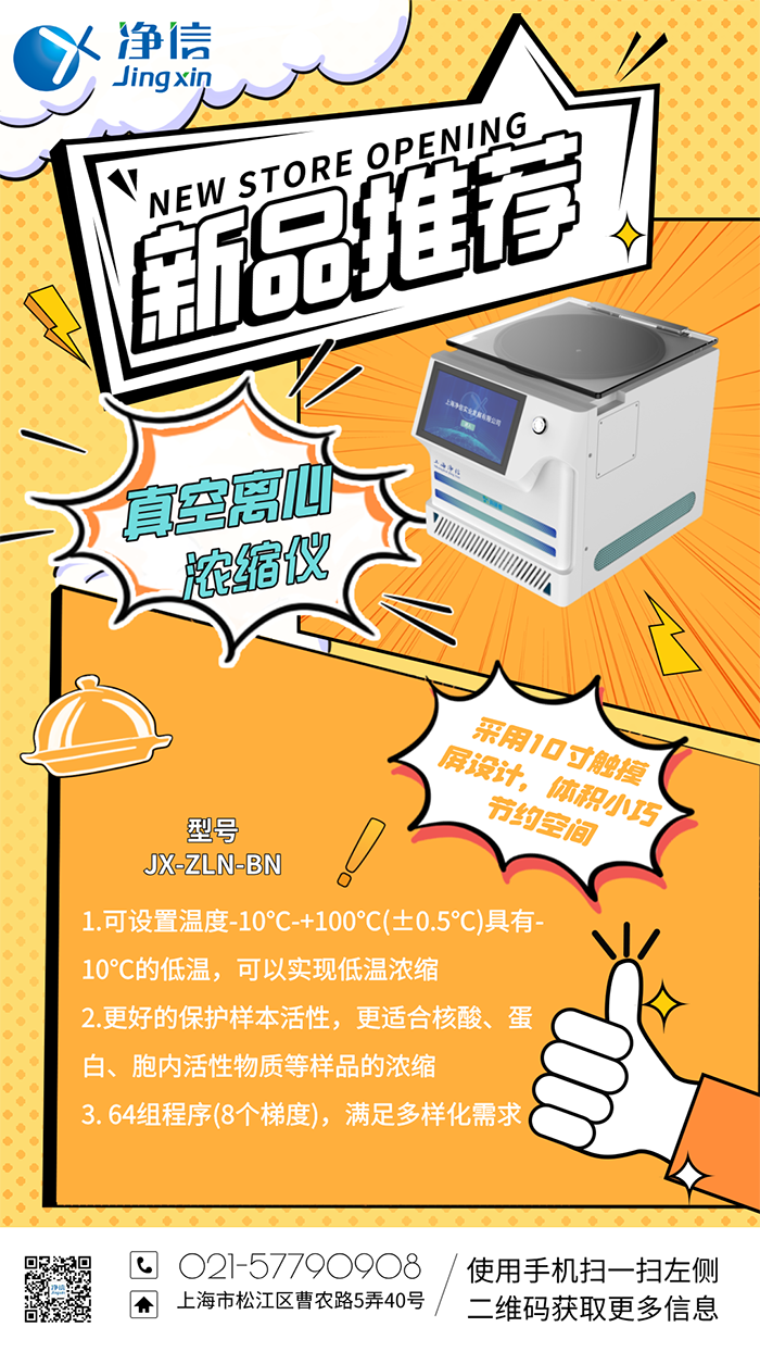 為了滿足客戶對真空離心濃縮儀儀器的多樣化的需求,凈信推出了兩款新升級的產品:升級觸屏款(JX-ZLN-ALN),升級冷凍款(JX-ZLN-BN),不僅外觀升級:10寸的電容屏,操作更便捷;處理量不變的同時體積更小巧,能有效節約實驗室的桌面空間;程序升級到64組;增加掛壁式離心成像儀,實時查看濃縮狀態。
