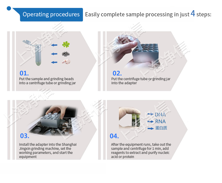 Shanghai Jingxin? JXFSTPRP-48L? series tissue grinder (patented product, counterfeit must be investigated! ZL2019301918692) is a special, fast, high-efficiency, multi-test tube consistent system. It can extract and purify the original DNA, RNA and protein from any source (including soil, plant and animal tissues/organs, bacteria, yeast, fungi, spores, paleontological specimens, etc.).