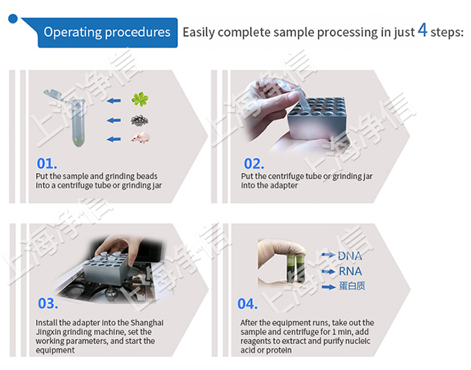 Shanghai Jingxin?'s Wonbio-48P plant tissue processing system (patented product, counterfeiting must be punished! 201620363493X) is a special, fast, efficient, multi-test tube consistent system. It can extract and purify the original DNA, RNA and protein from any source (including soil, plant and animal tissues/organs, bacteria, yeast, fungi, spores, paleontological specimens, etc.).