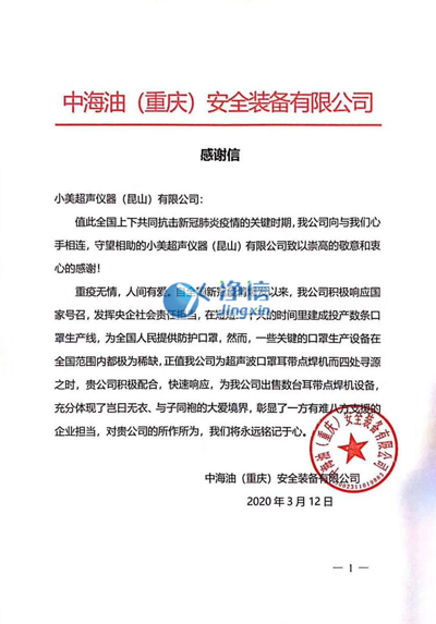 是的,這是我們小美超聲!抗擊疫情,我們不是旁觀者。我們與時(shí)間賽跑,推掉別的訂單,爭分奪秒加班加點(diǎn)的為中海油生產(chǎn)口罩耳帶點(diǎn)焊機(jī)。員工24小時(shí)兩班倒,靠吃泡面節(jié)省時(shí)間。力求在很短的時(shí)間內(nèi)把口罩機(jī)交到中海油的手上,大大提高了其口罩生產(chǎn)的產(chǎn)量。