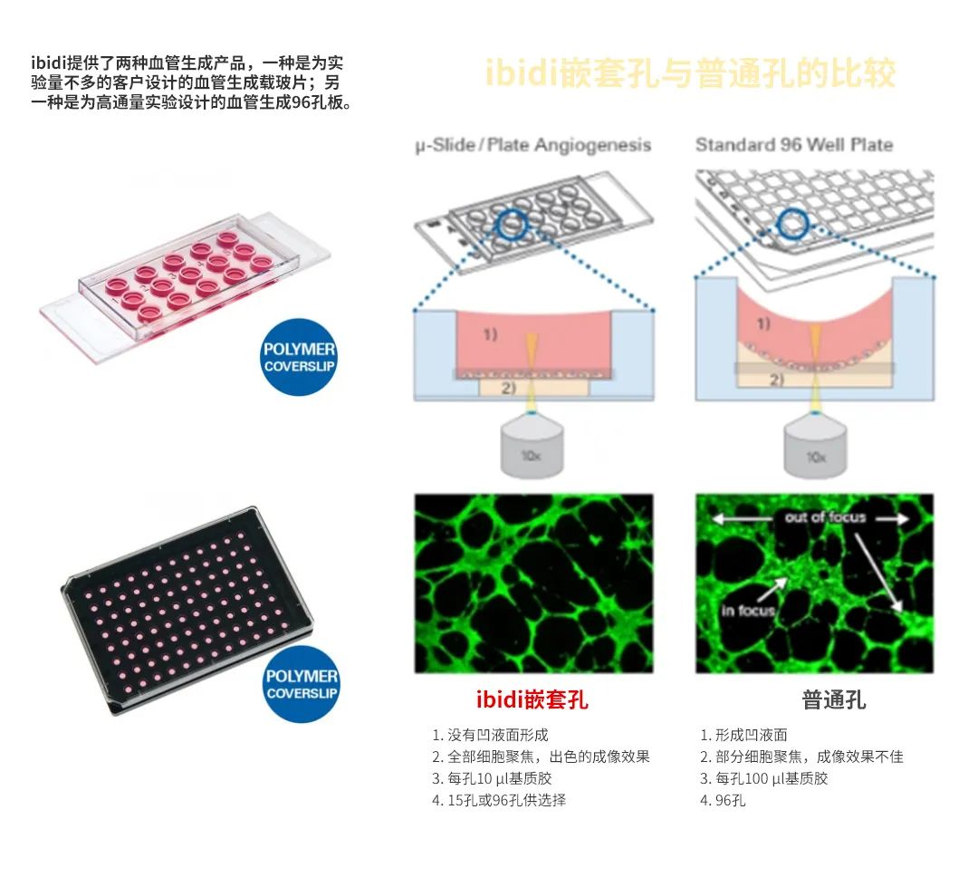 對比傳統方法,ibidi血管生成載玻片有如下優勢: