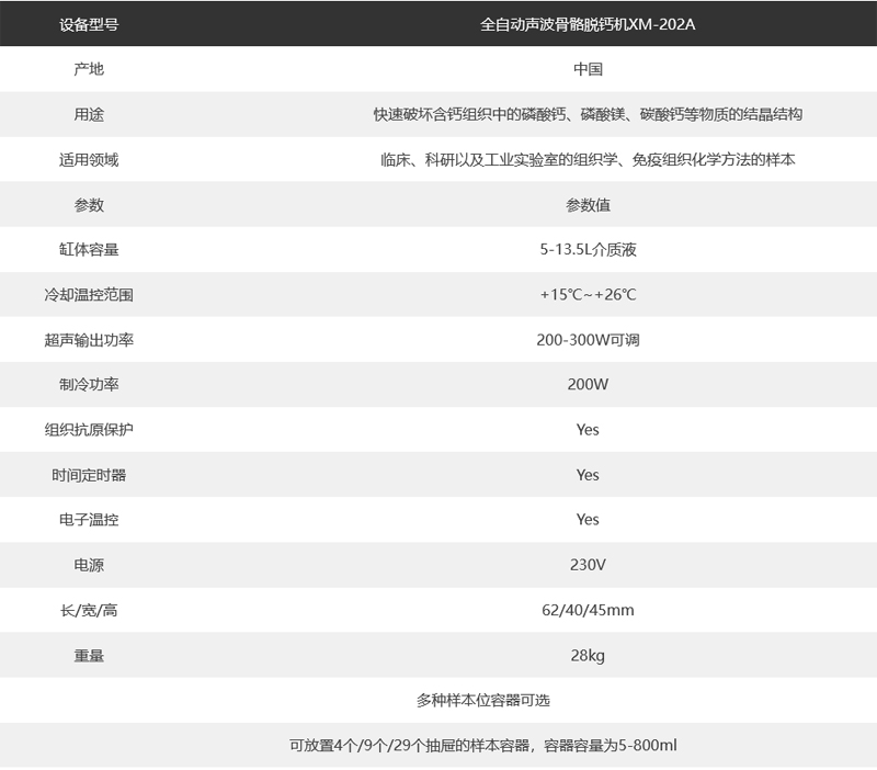 全自動超聲波脫鈣儀主要通過多種頻率的超聲引導及配置好的脫鈣液,實現快速又安全地將磷酸鈣、磷酸鎂、磷酸鈣等晶體分子解體。在超聲作用下能加速完成脫鈣、固定與中性緩沖過程,同時百分之100保存組織形態結構和樣本特性。實踐證明比傳統脫鈣方式可縮短時間約40-60%。